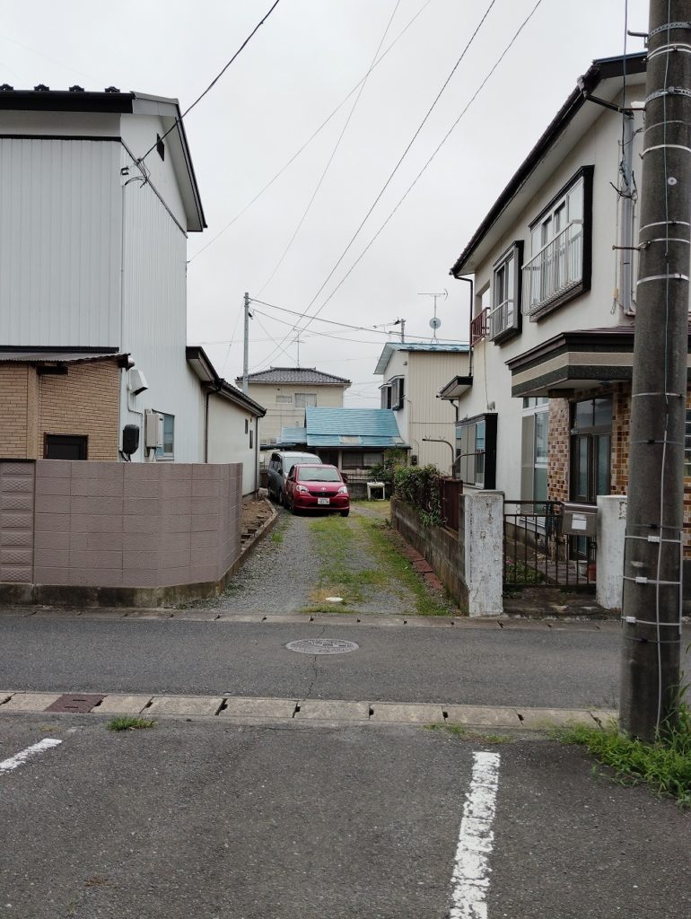 ※砂利道は手間の家と共有です。車が入ってきたときは移動してください。右側の土地には駐車しないようにしてください。
